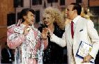 Mal, Lorella e Pippo Baudo in Piazza Barberini a Roma durante la presentazione televisiva dello spettacolo. |